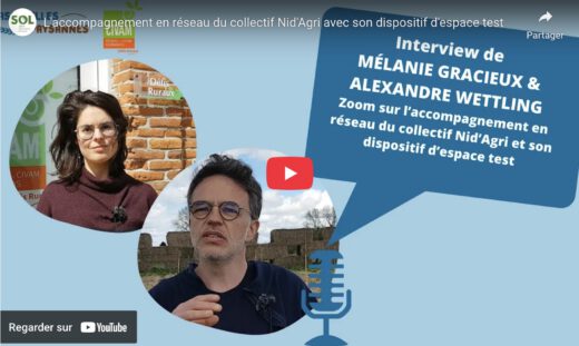 A travers le témoignage de Mélanie, accompagnatrice à l’installation, et d’Alexandre, porteur de projet sur un espace test Nid’Agri, découvrez l’accompagnement proposé par ce collectif composé de 4 associations actrices de l’installation agricole.