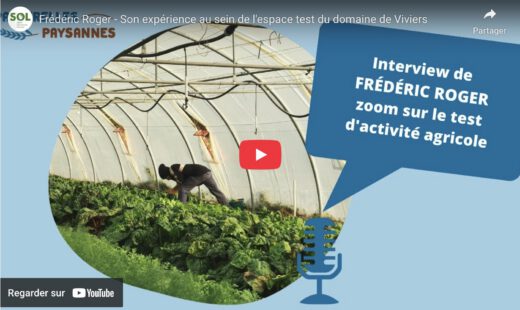Dans cette vidéo, Frédéric nous parle de son parcours et de son expérience au sein de l’espace test agricole de l’ETA du Domaine de Viviers. Il nous explique comment se sont déroulées ses trois années de test et ses perspectives pour l’avenir.